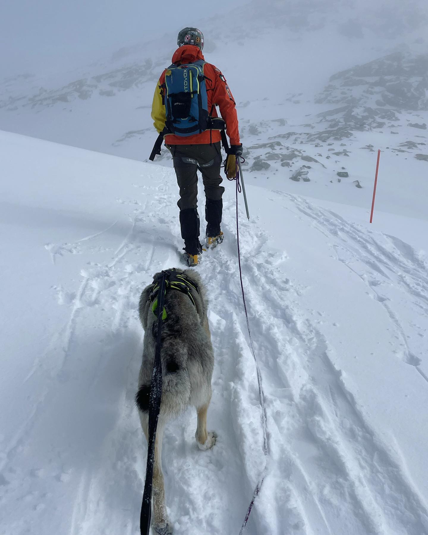Poi una pausa, di qualche mese: a novembre Numb viene sottoposto a intervento. Sì, la solita zampina (ormai una zampona da cane adulto): gli inseriscono una protesi, o nel giro di qualche anno non avrebbe più camminato. Terminata la riabilitazione – processo anche questo graduale, cinque minuti in più ogni giorno, per non strafare e rispettare i tempi di ripresa – Numb (io l’ho visto: è in formissima!) è pronto per affiancare Thomas nella Fase 2: l’allenamento dai 3.500 metri in su. E qui entra in gioco la Valsesia, col Rosa e le sue cime ma non solo.